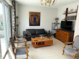 A l'étage: belle pièce lumineuse donnant sur grand balcon, cuisine équipée indépendante, chambre, salle de bains et wc.