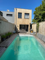 A l'extérieur: un jardinet d'accueil à l'avant et sur l'arrière une grande terrasse avec piscine .