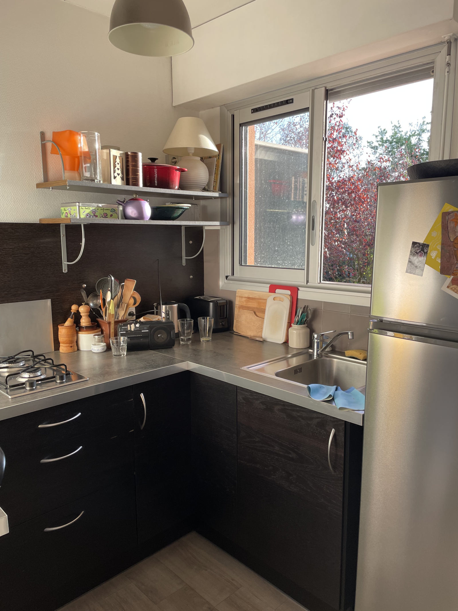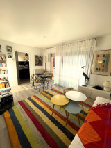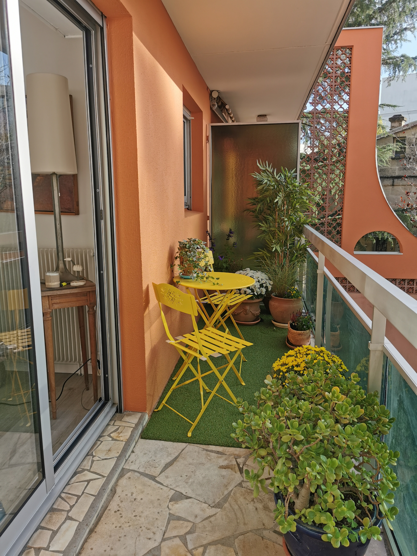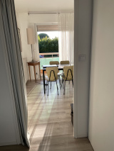 Entrée avec placard, salle de bains avec wc séparé, séjour donnant sur le balcon orientation Sud-Ouest , cuisine séparée équipée .