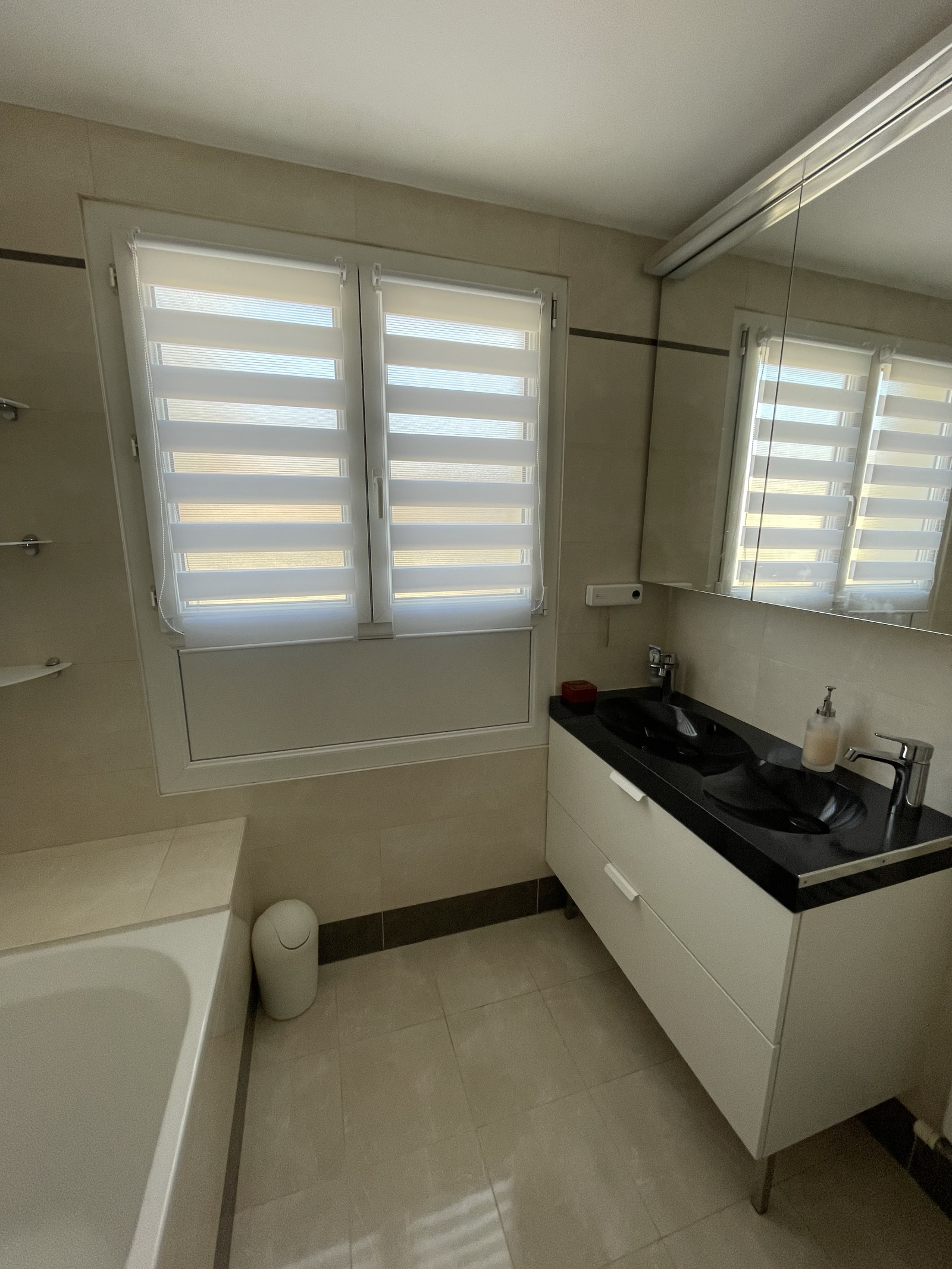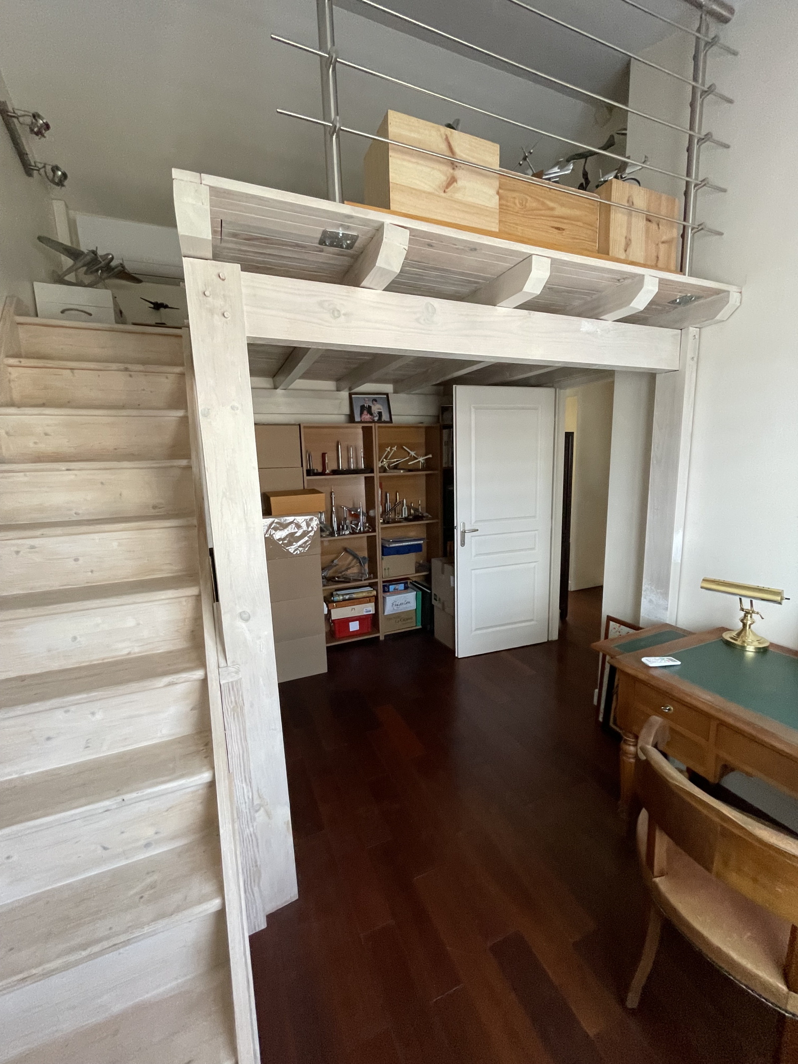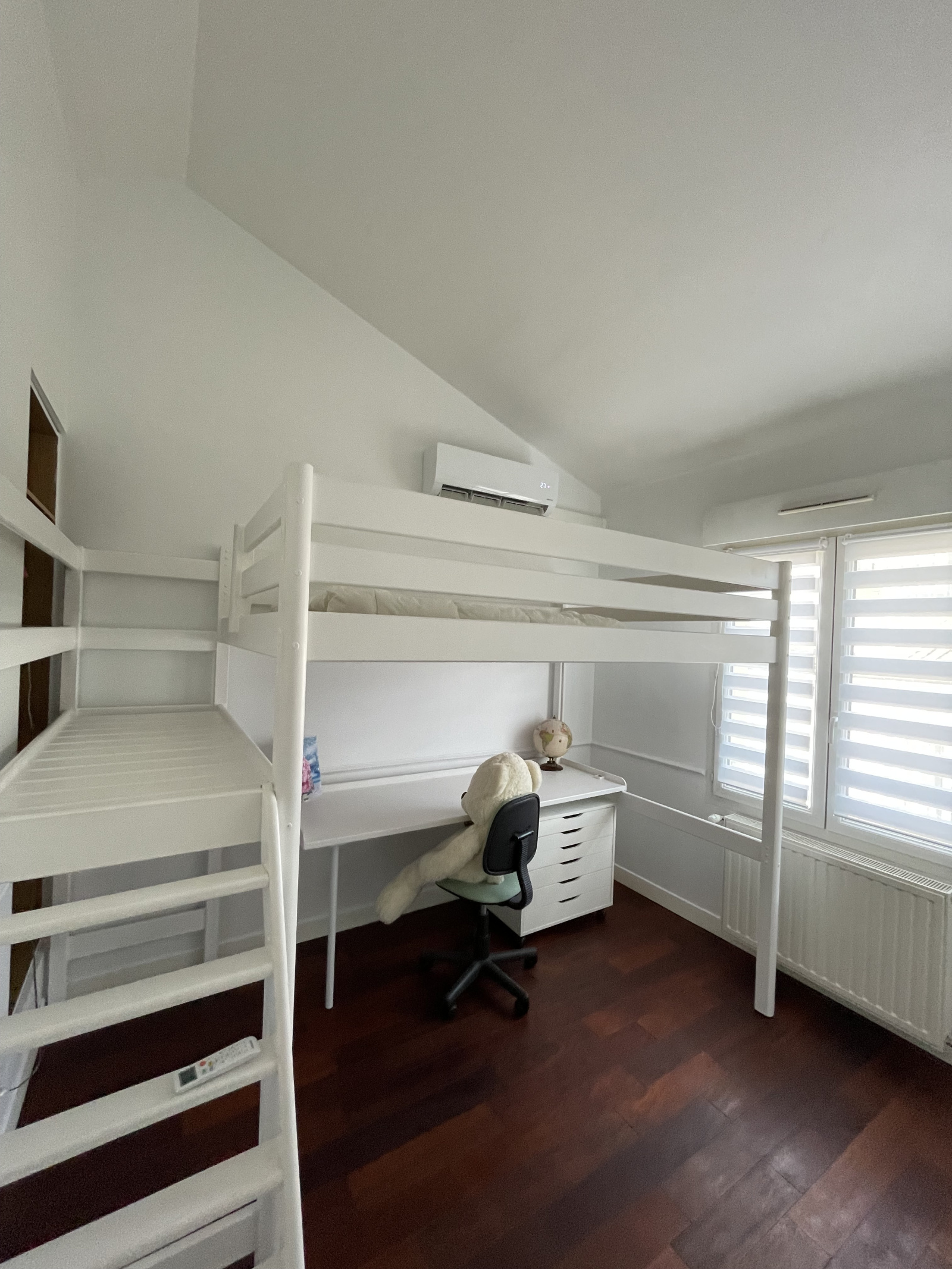 A l'étage : 3 chambres , dressing , salle d'eau avec wc et grande mezzanine .