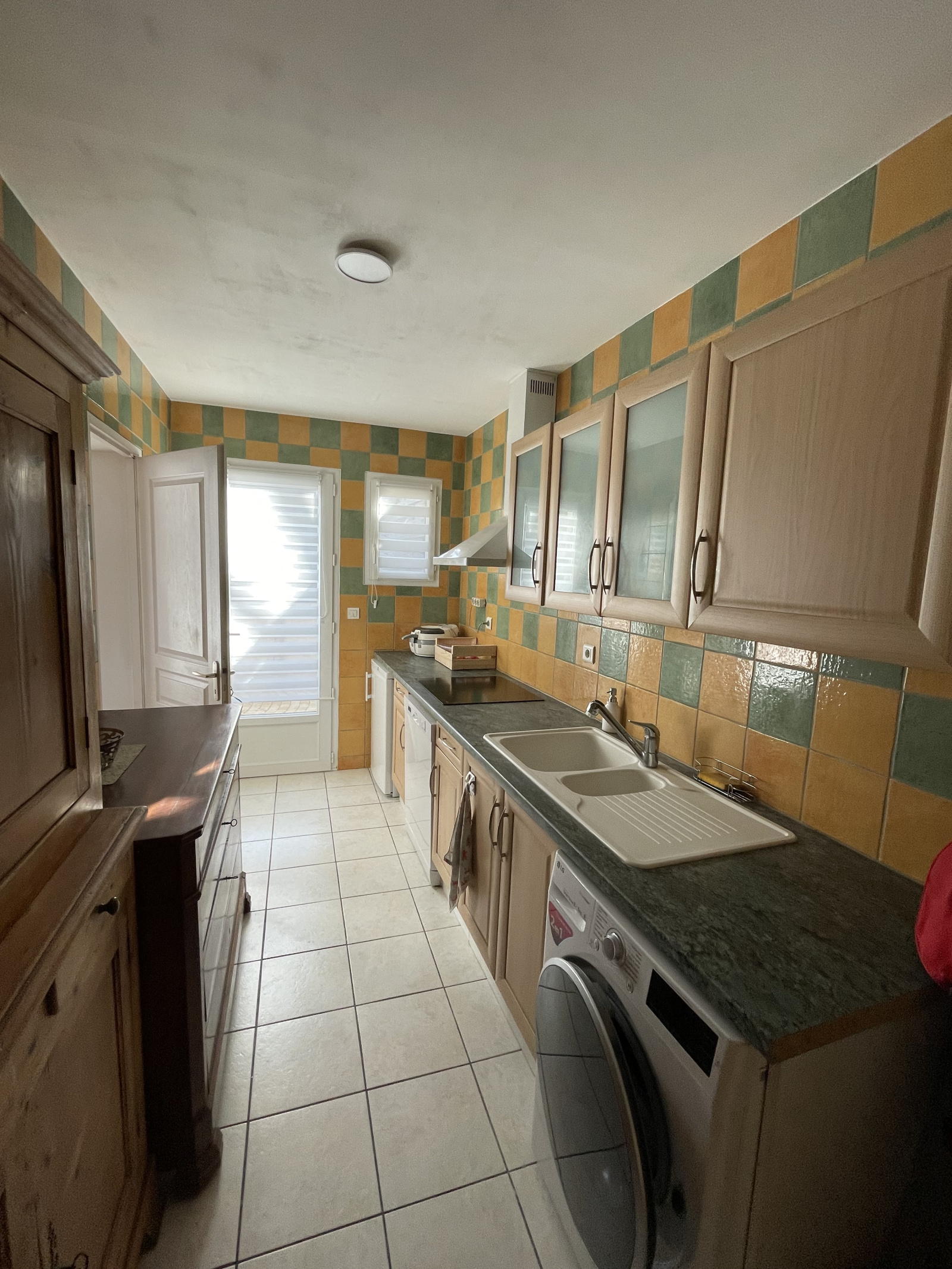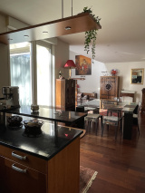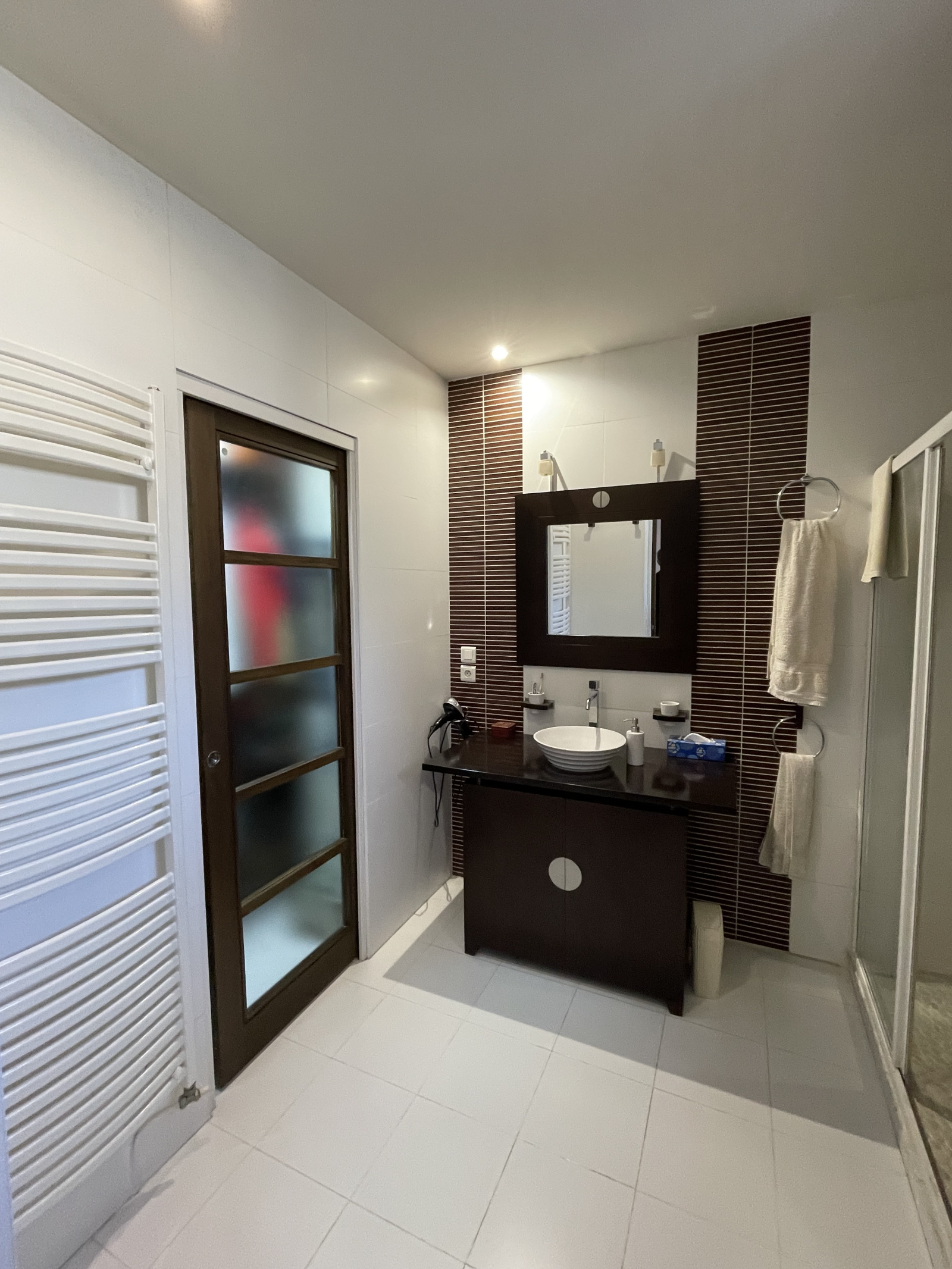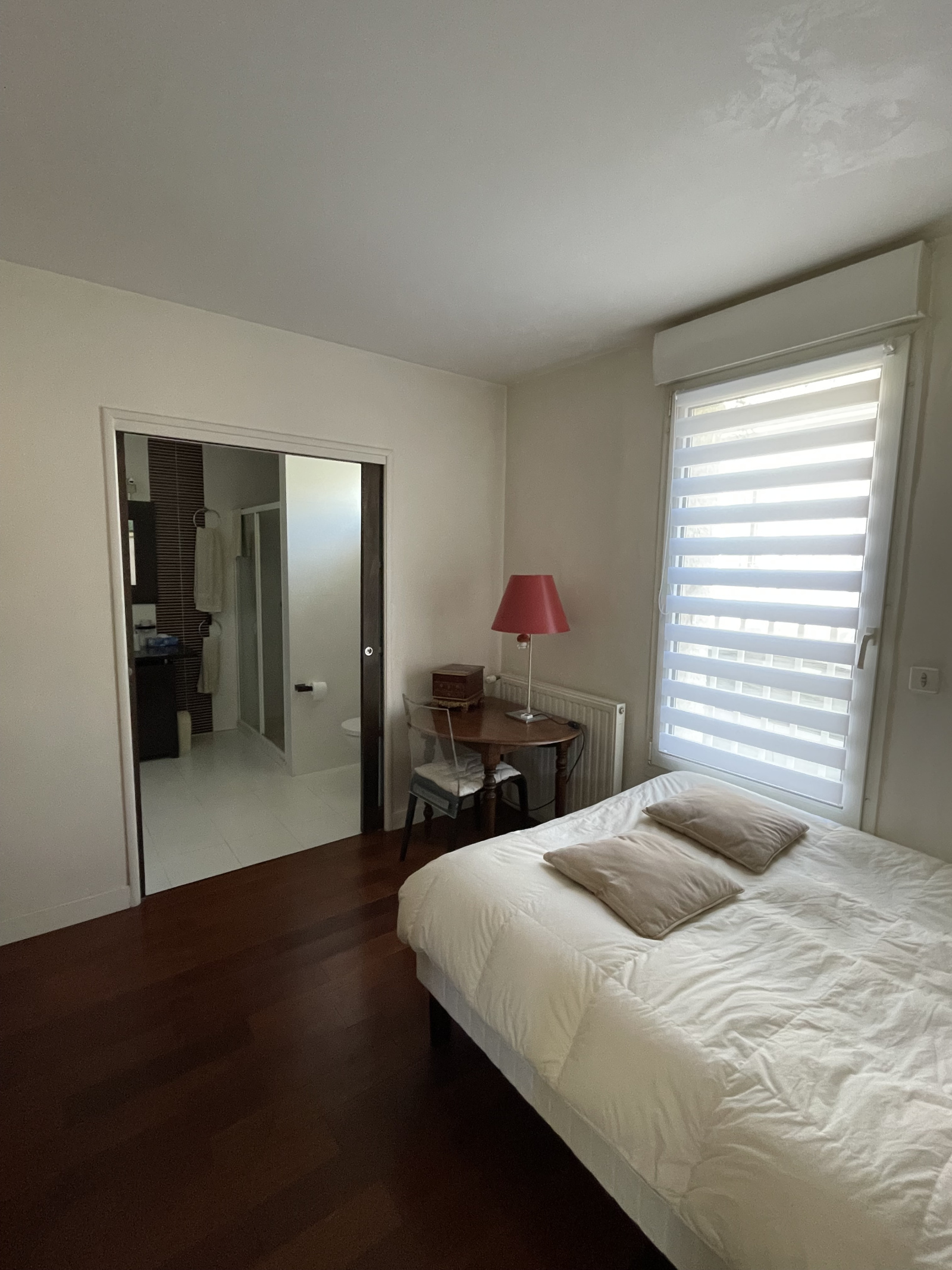 Rez-de-chaussée : entrée, grand salon séjour de 49 m2 donnant sur une joile terrasse , cuisine équipée ouverte , arrière cuisine, wc séparé, chambre parentale avec salle d'eau, wc et dressing.